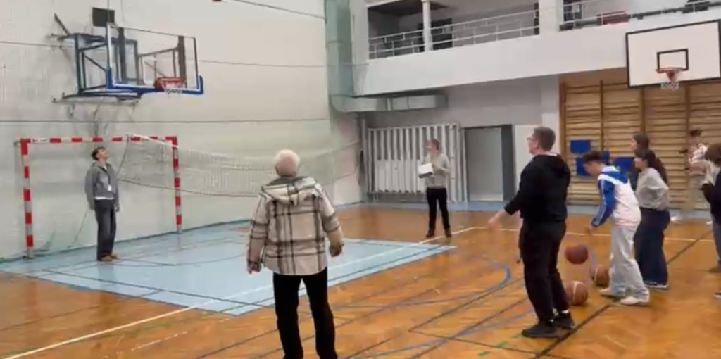 During the scavenger hunt, international teams collaborated to solve tasks in mathematics and chemistry, searched for answers in books in the library, completed a 3-point basketball challenge in the gym to advance, and the winning team received a 200 PLN voucher, celebrating together with pizza.