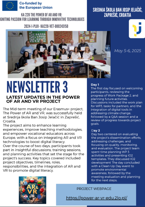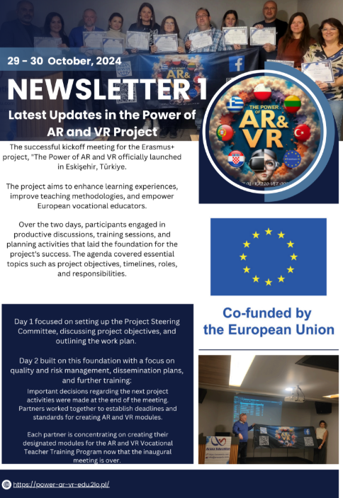 Erasmus+ project THE POWER OF AR AND VR: IGNITING PASSION FOR LEARNING THROUGH INNOVATIVE TECHNOLOGIES – 2024-1-PL01-KA220-VET-000243150.