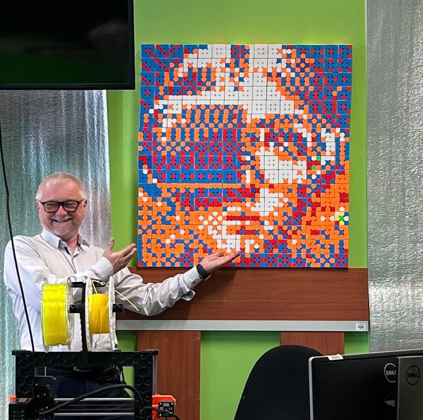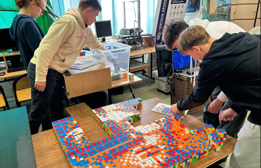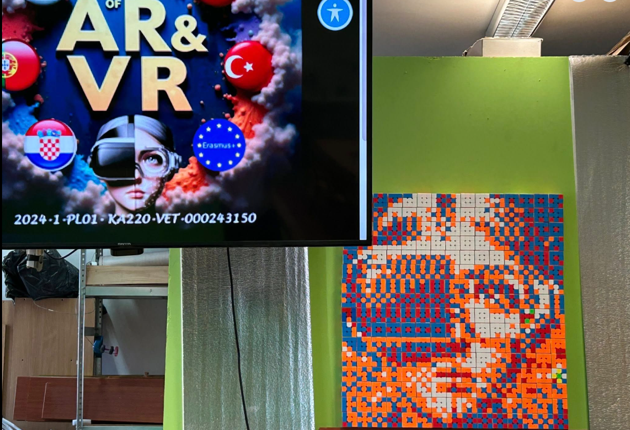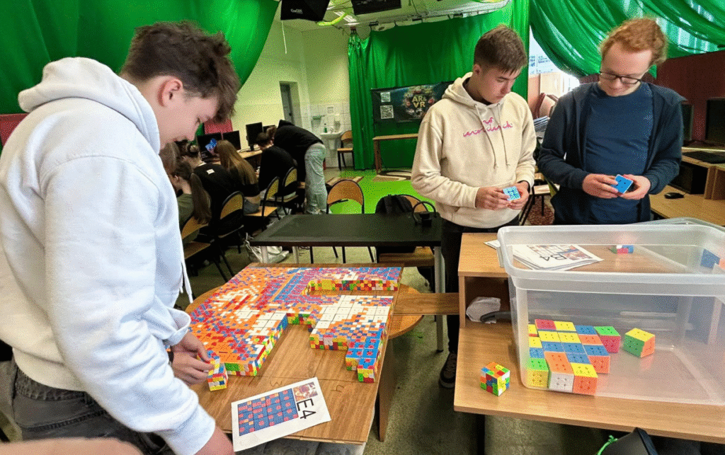 Our students demonstrated remarkable creativity and commitment by creating a unique installation using 240 Rubik’s cubes. With these elements, they successfully assembled one part of the logo for the project “The Power of AR and VR”.
