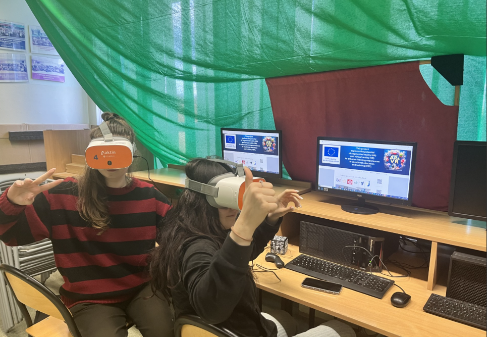 As part of the project The Power of AR and VR, lessons were conducted with students using VR headsets. During these sessions, students had the opportunity to explore the learning material in an interactive and immersive way, which significantly increased their engagement and motivation. The use of virtual reality allowed students to experience concepts firsthand, visualize complex topics, and participate in activities that would be difficult to replicate in a traditional classroom setting. This innovative approach not only made learning more enjoyable but also helped students deepen their understanding and retain knowledge more effectively.