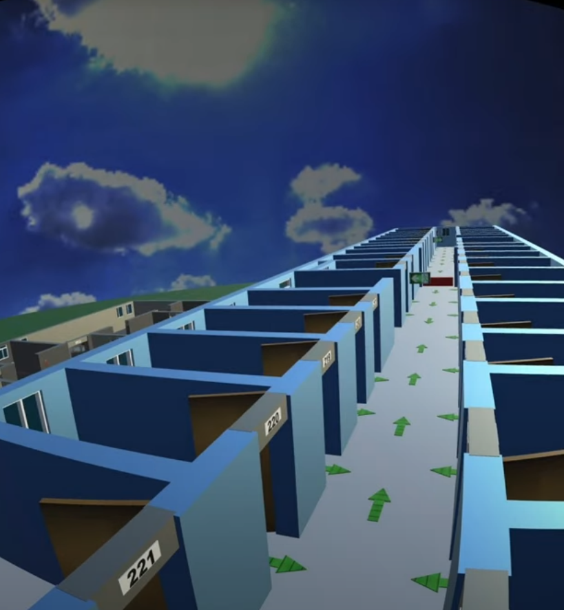 The evacuation plan was turned into a labyrinth-like structure. Students placed an avatar inside, wandering through corridors and exits, visually representing the idiom’s literal meaning. Sounds, lighting, and interactive elements made the VR scenario even more engaging.