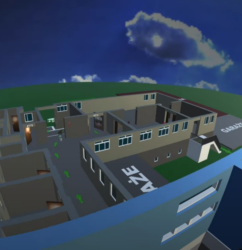 The foundation of the project was the school evacuation plan, designed earlier by the students. Using this as a blueprint, they transformed the map into an immersive 3D space and adapted it to represent idiomatic expressions.